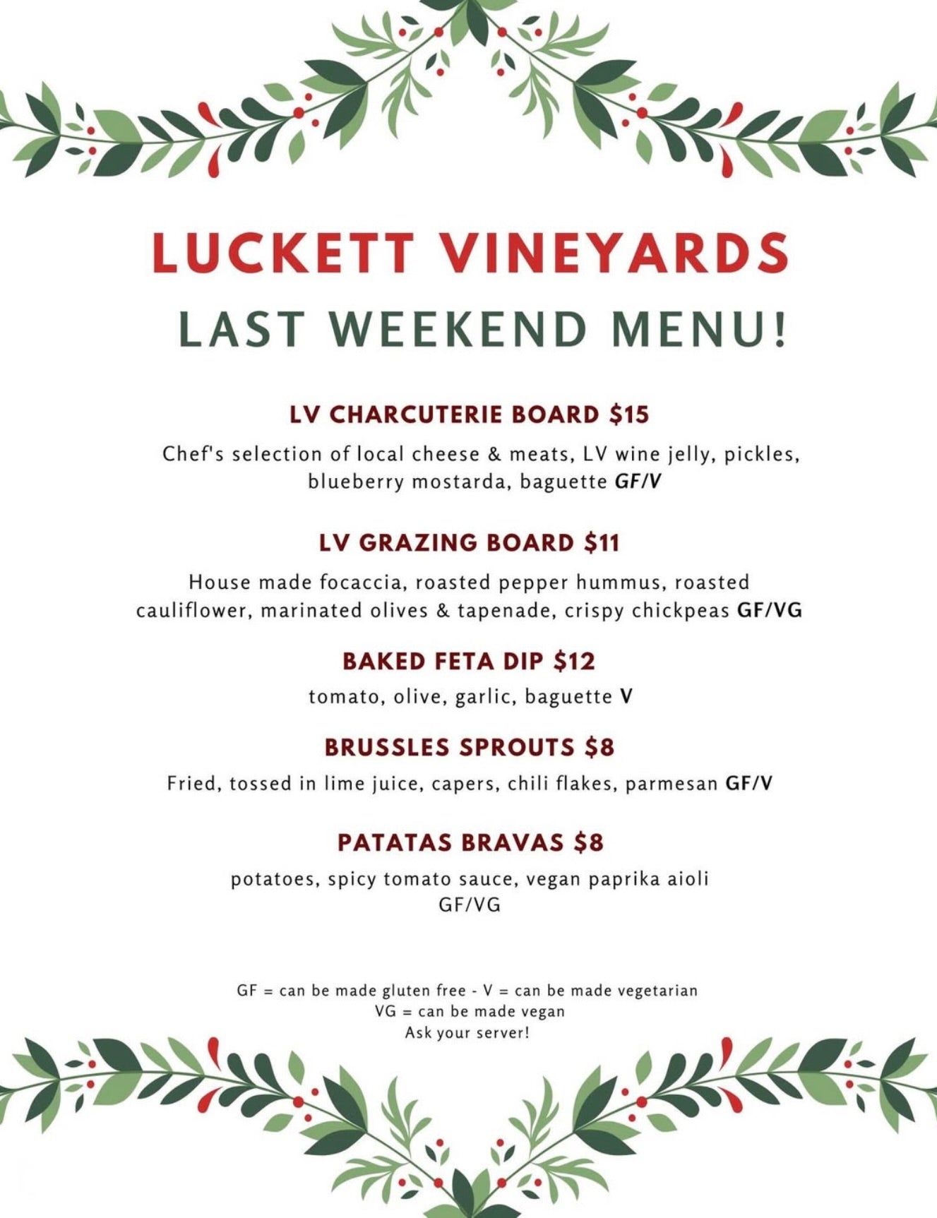 Open Thurs-Sun - Vineyard Hours