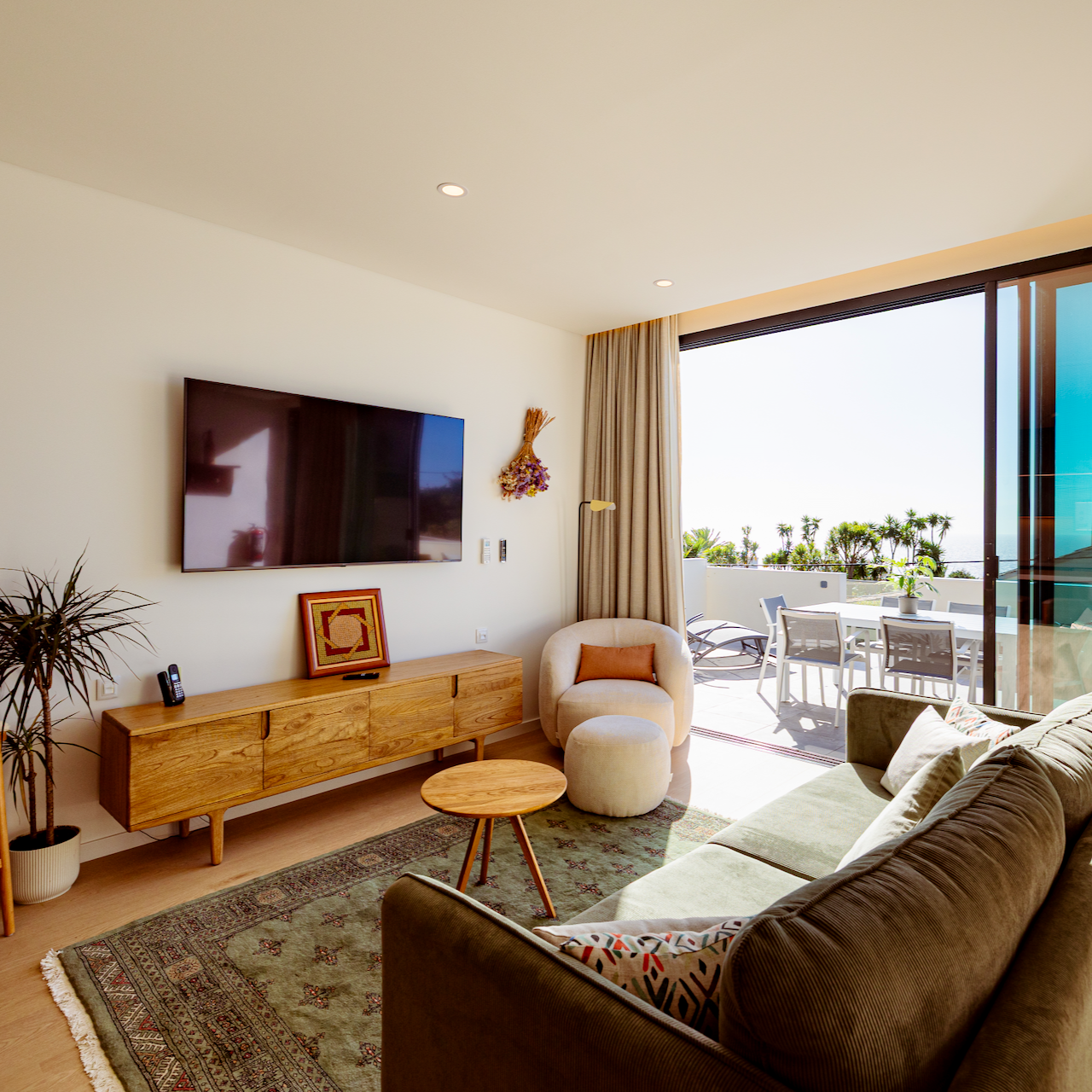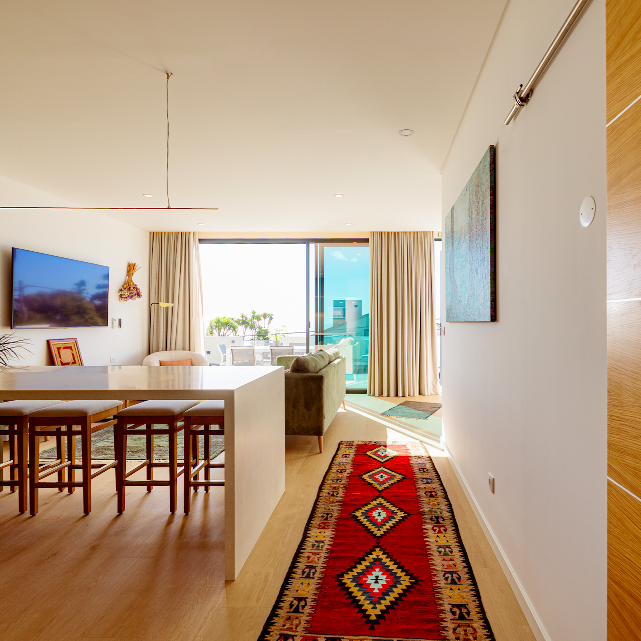 - 2 spacious bedrooms with king-size beds (featuring premium Portuguese linen) - 2 elegant living areas - 2 Modern ensuite bathrooms - Fully equipped kitchen with private laundry facilities - 2 private terraces - Jacuzzi hot tub